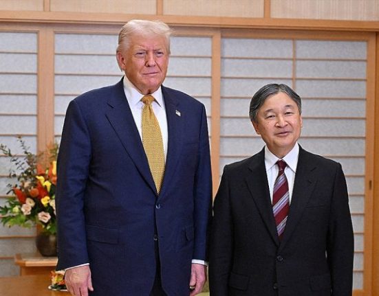 President Donald Trump is cozying up with top ally Japan’s emperor and new prime minister Monday ahead of a high-stakes meeting with Chinese